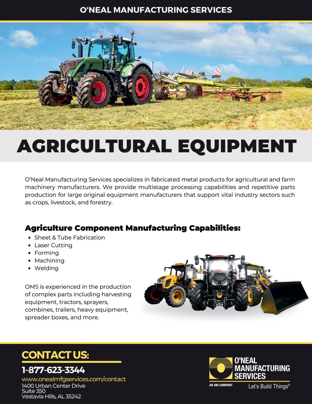 - O’Neal Manufacturing Services (OMS) provides a full-scale, integrated supply chain solution for agricultural OEMs. Our facilities are specifically equipped to handle the high-volume, repetitive production of heavy-duty components through the following core capabilities: