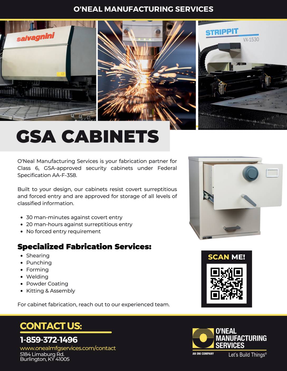- GSA Approved Security Containers: Supporting the fabrication of Class 6 protection levels.