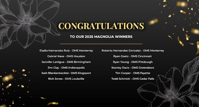 These are the values represented by our 2025 Magnolia Award Winners. These individuals distinguish themselves through their actions, words, and unwavering dedication to our company’s success. Their performance has allowed OMS to remain resilient, maintain strong roots, and adapt to the ever-changing world around us. Thank you for all you do to inspire us and contribute to our ongoing achievements.